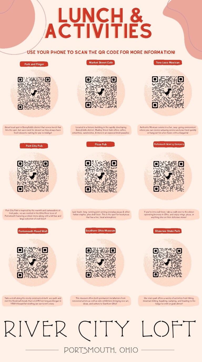 Just blocks from the Ohio River, historic downtown Portsmouth, and Shawnee State University, River City Loft is a second story, 1200 square foot private living space that is dog friendly, non-smoking, close to grocery, city parks, and unique shopping and restaurants. The space Our loft has a separate entrance and…